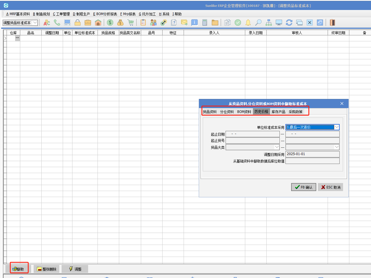(1)在調整貨品標準成本設置對應貨品的標準成本,可以從擷取里取貨品對應的成本作為標準成本;
