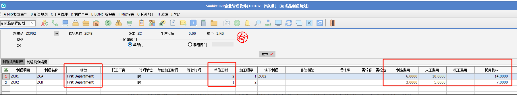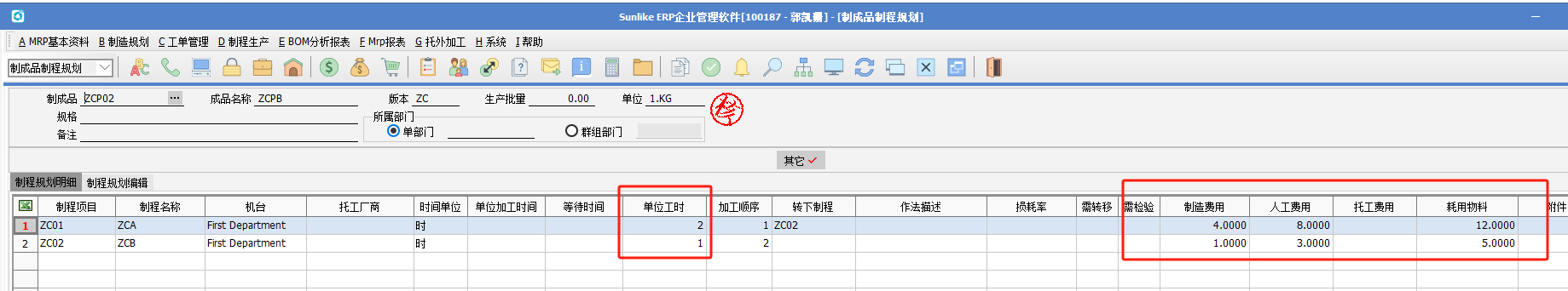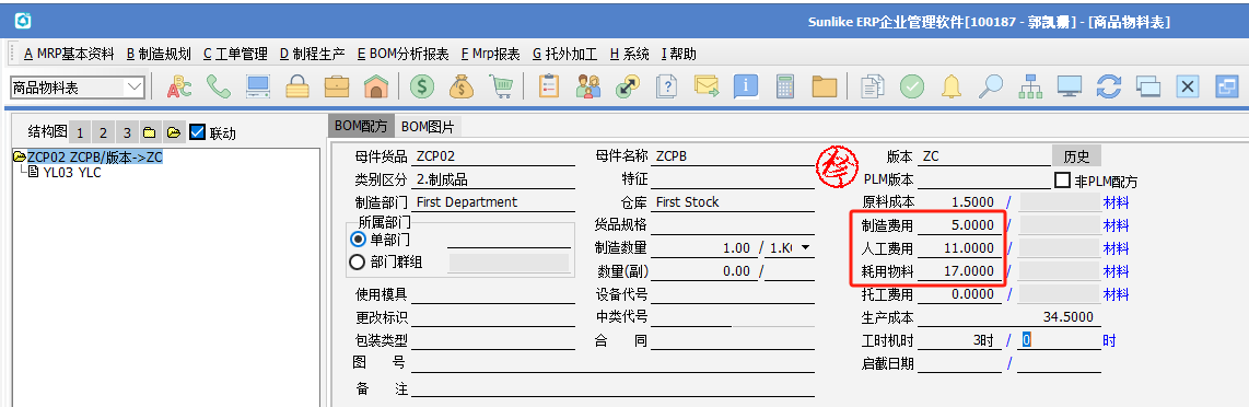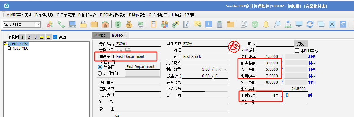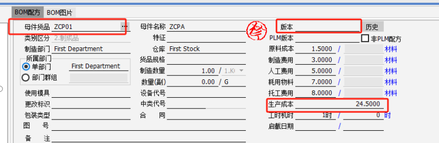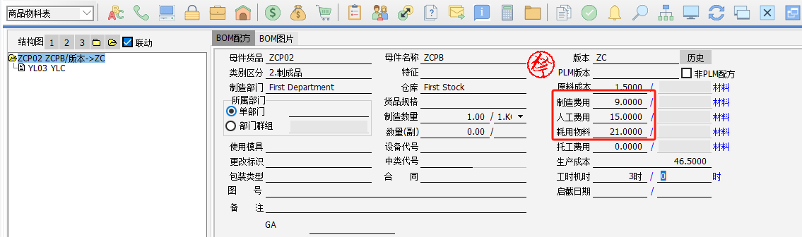 (2)BOM存在制程規劃,制程代號設置了對應的制程費率,制程規劃設置了對應的制程及工時,然后做單據標準成本重整,勾選“物料配方表”、“標準工時及費用”,重整制程規劃及BOM的費用。