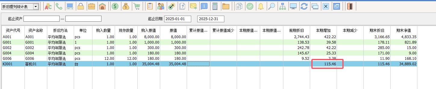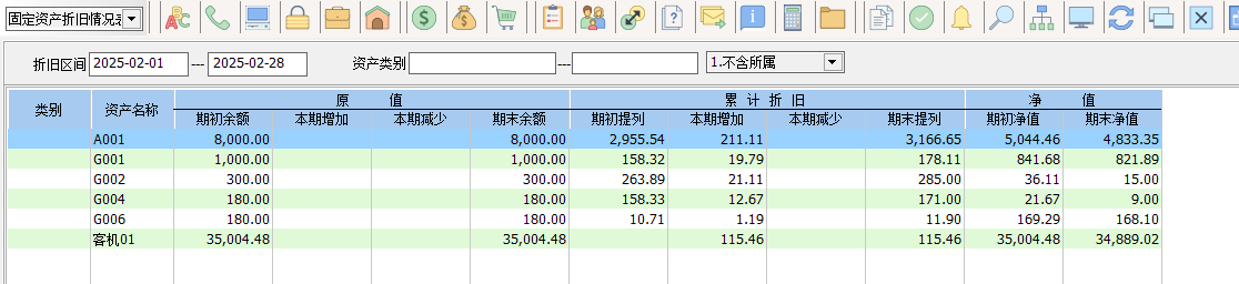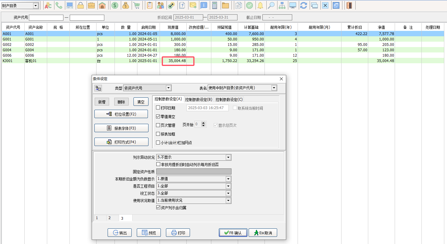 報表財產(chǎn)目錄、折舊提列統(tǒng)計表、固定資產(chǎn)折舊情況表都增加的條件資產(chǎn)列示含所屬來包含配件的金額。